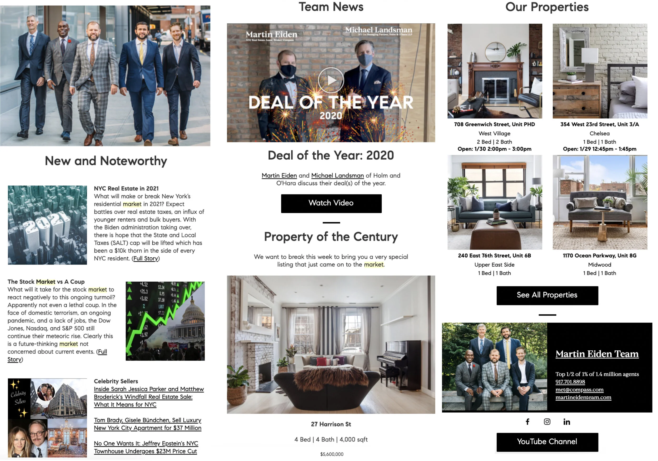 Your online presence says a lot about your business and it all starts with a website. I have helped several agents build websites from scratch including the Martin Eiden Team, Whit Prouty, and The Luxe Living Team. See examples.